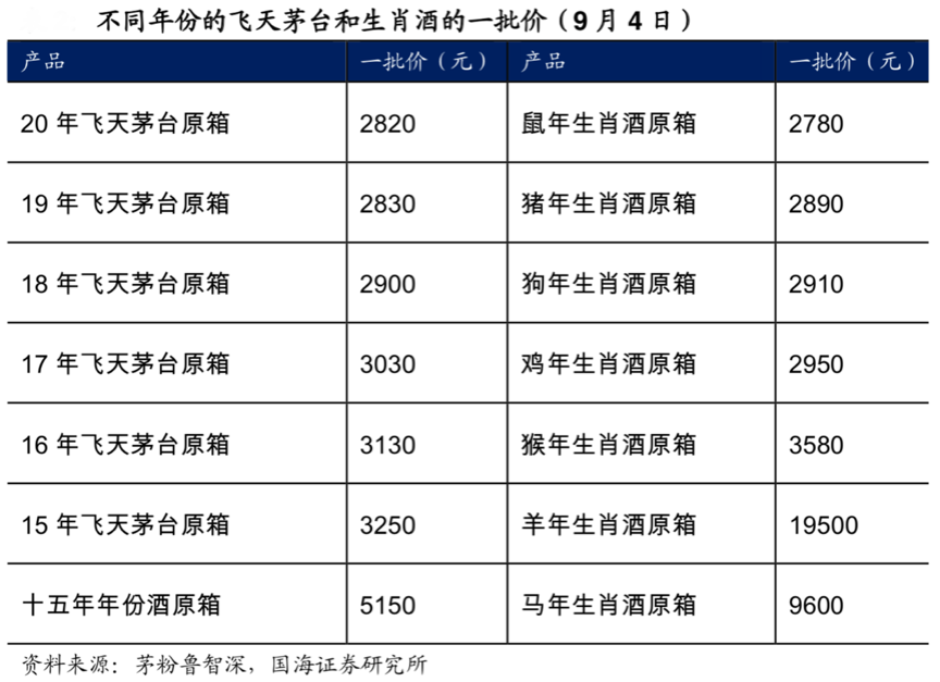 經(jīng)典案例:根據(jù)茅粉魯智深、國海證券研究所等綜合資訊表明,對于茅臺酒來說, 隨著年份的增長,茅臺酒價格也在相應(yīng)提高,而對于生肖紀(jì)念酒等非標(biāo)酒,很多只在特定年份生產(chǎn),稀缺性和紀(jì)念意義較強,也具有更強的時間溢價效應(yīng)。