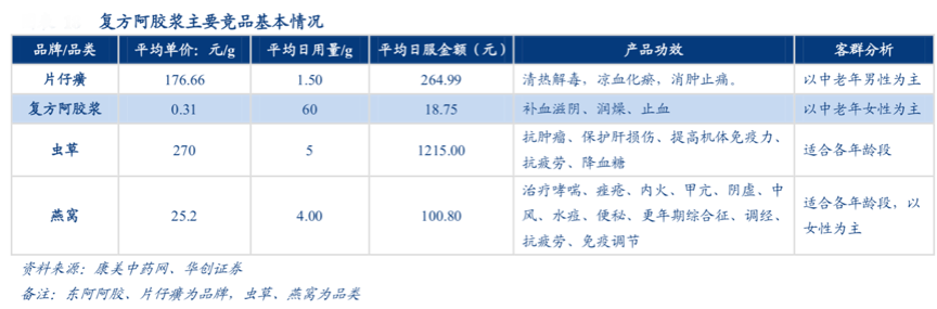 經(jīng)典案例:根據(jù)東阿阿膠公司的公開資料顯示,其明星產(chǎn)品“復(fù)方阿膠漿”適用人群廣泛,年均藥費支出約 1200 元(顯著低于阿膠塊、蟲草、燕窩等高端中藥滋補品),保健養(yǎng)生需求、送禮需求、臨床治療需求三大消費訴求明顯。