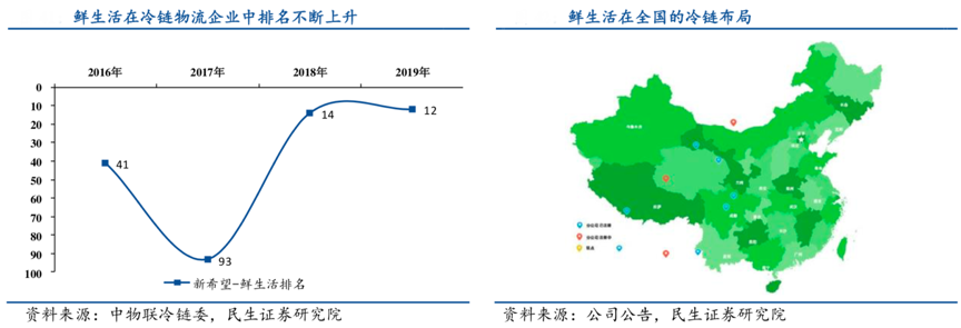 經典案例:根據中物聯冷鏈委、公司公告、民生證券研究院等綜合資訊表明,新希望集團旗下擁有專業的冷鏈物流 “鮮生活”,為新乳業賦能冷鏈。截至 2019 年,“鮮生活”在國內冷鏈物流企業綜合實力排名第 12,具備全國城市全網服務能力。