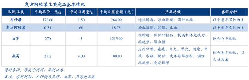 經典案例:根據康美中藥網、華創證券等綜合資訊表明,復方阿膠漿品牌認知度廣、適用人群廣、標準化程度高,是最佳送禮選擇。在健康類大品牌/品類中,主要有東阿阿膠、片仔癀、蟲草(品類)、燕窩(品類)等。東阿阿膠有 3 大優勢,一是品牌認知度廣,幾乎覆蓋全國;二是適 用人群廣,幾乎各類人群均可使用;三是標準化程度高,相較蟲草、燕窩等品類,復方阿膠漿更標準,更有利于消費者選購。