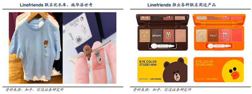 經(jīng)典案例:根據(jù)知乎、信達(dá)證券研究所等綜合資訊表明,為了更牢固地抓住年輕消費(fèi)群體,Linefriends 與大量消費(fèi)品牌推出聯(lián)名款,不斷創(chuàng)造與消費(fèi)者之間的情感聯(lián)結(jié),例如與優(yōu)衣庫(kù)推出聯(lián)名 T 恤、與施華洛世奇推出聯(lián)名手鏈等等。Linefriends 通過依附于不同產(chǎn)品不斷將其 品牌形象外化,而且這些產(chǎn)品都具有一個(gè)特點(diǎn)——價(jià)格不貴且精致,非常符合當(dāng)下年輕人的消費(fèi)追求,憑借這些營(yíng)銷策略,Linefriends 的產(chǎn)品屬性減弱而文化符號(hào)屬性得到加強(qiáng)。