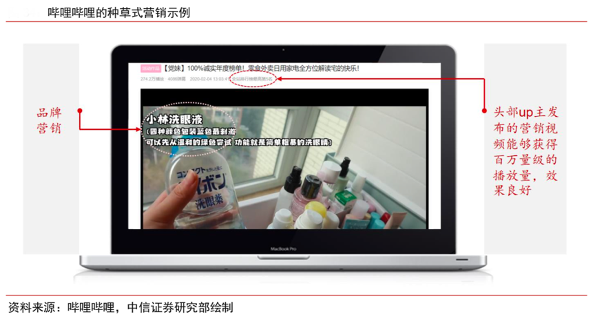 經(jīng)典案例:根據(jù)嗶哩嗶哩、中信證券研究部等綜合資訊表明,以典型的去中心化視頻平臺嗶哩嗶哩為例,平臺上某位關(guān)注數(shù)在五百萬量級的頭部帶貨 KOL,普通帶貨視頻的三日播放量能夠達到粉絲總數(shù)的約15%,用戶忠誠度相對較高;同時日播放量被推升到全站前五位,曝光度也得到保證,形成良性循環(huán)。