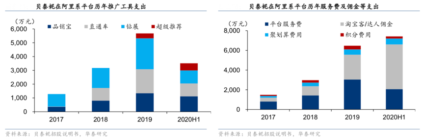 經典案例:根據貝泰妮招股說明書、華泰研究等綜合資訊表明,貝泰妮公司緊跟時代發展的潮流,充分利用新媒體時點的營銷多元化趨勢,2019 年/2020H1 新媒體服務商服務費用共支出 4868/3048 萬元。其更傾向于在知乎、小紅書等垂直領域的內容平臺,直接面向對皮膚護理專業性、安全性較高的人群,實現從廣度到精度的聚焦,通過差異化營銷策略樹立專業品牌形象。