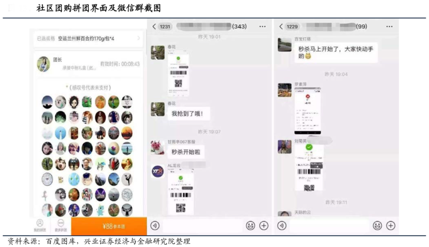 經(jīng)典案例:根據(jù)百度圖庫、興業(yè)證券經(jīng)濟(jì)與金融研究院等綜合資訊表明,社區(qū)團(tuán)購的日常推廣場景發(fā)生在社群內(nèi),本質(zhì)上是一種社區(qū)拼團(tuán)購物方式,在群內(nèi)推廣和其他消費(fèi)者、甚至是社區(qū)內(nèi)熟人朋友購物的氛圍下,對于天生熱愛購物的人群而言,較易產(chǎn)生跟風(fēng)購物的現(xiàn)象。