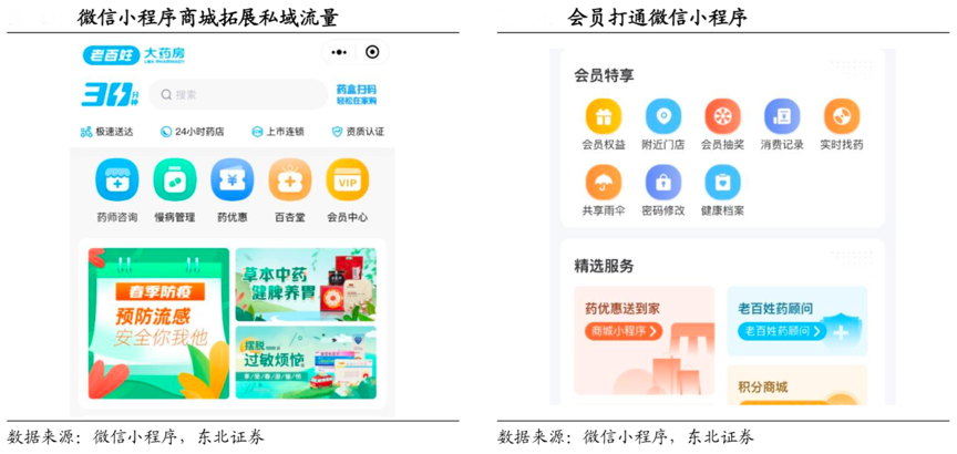 經(jīng)典案例:根據(jù)公司公告、東北證券等綜合資訊表明,老百姓公司通過對(duì)會(huì)員購買及行為的分析與分類,形成會(huì)員標(biāo)簽與會(huì)員生命周期管理,建立以消費(fèi)者為核心的數(shù)字化營銷體系,驅(qū)動(dòng)智能營銷。其積極開發(fā)獲客途徑,打通 O2O 購物商城小程序,打造個(gè)性化會(huì)員服務(wù)的私域 O2O。截至2019年末,老百姓公司整體會(huì)員數(shù) 4148 萬,活躍會(huì)員數(shù) 1616 萬,活躍會(huì)員數(shù)較前年提升近 60%。