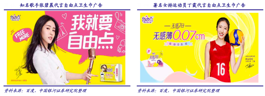 經典案例:根據百度、中國銀河證券研究院等綜合資訊表明,“自由點”秉承“解放經期束縛,更薄更自由”的設計理念,產品追求市場潮流、活力,讓女性釋放自由天性,在諸多衛生巾品牌中實現差異化營銷。如“無感無憂”滿足了現階段輕白領人群會玩、會生活、愛時尚、愛潮流 的價值取向,面對生活依然可以釋放自己的天性。根據艾媒報告,依據企業綜合實力、全網媒體傳播態勢、用戶口碑、專業評價等四項指標綜合評價,2020 年自由點衛生巾品牌在同類市場市場排行第五。