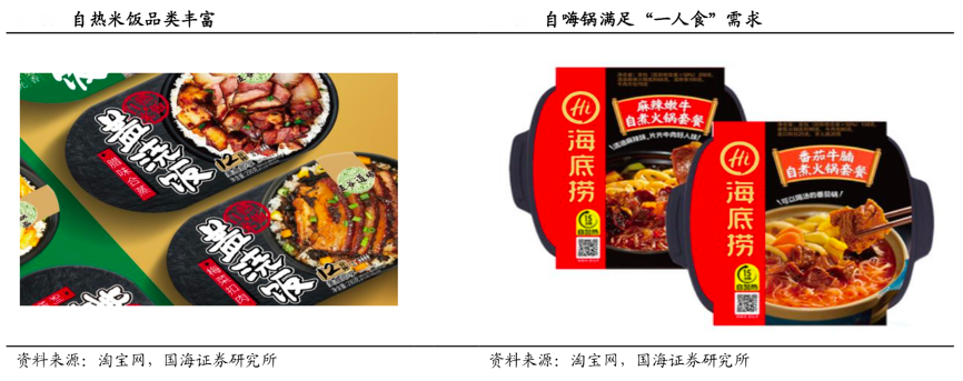 經典案例:根據淘寶網、國海證券研究所等綜合資訊表明,對于一線和新一線城市的消費者來說,外賣或者去餐廳吃飯的客單成本相對較高,但是對速凍食品譬如手抓餅、餡餅、真空包裝 的紅燒肉、酥魚等產品的價格相對便宜,自嗨鍋 30 多塊錢比起外出吃火鍋也要便宜很多,可以節約生活成本。