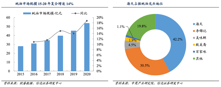 經典案例:根據歐睿數據、中商產業研究院和信達證券研發中心等綜合資訊表明,海天憑借不斷創新拓展產品和下沉渠道,并改進技術降低成本,利用性價比優勢使得蠔油成為大眾調味品,推廣至全國,海天也由此占據了蠔油行業龍頭地位。按零售口徑2015年海天蠔油市占率為33.3%,截止到 2019 年提升 8.9 個百分點至 42.2%。