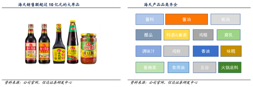 經典案例:根據公司官網、信達證券研發中心等綜合資訊表明,醬油是海天的基礎品類,以此來穩定經銷商和打造渠道網絡優勢,然后借此發展更多的品類。海天的品類擴張是很有章法,要等到某一個品類 做到一定規模以后,再將精力放到下一個品類上,比如蠔油、黃豆醬、食醋、料酒等依次突破發展,體現出海天對于行業整體發展的洞察和遠見。