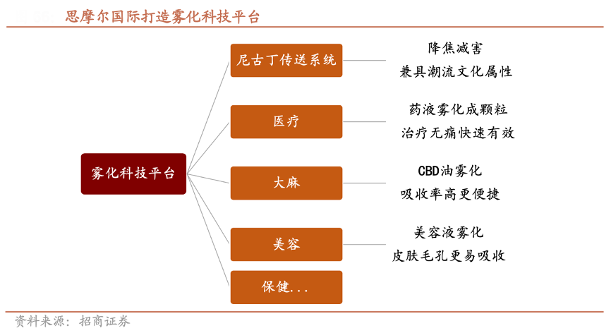 經典案例:根據招商證券等綜合資訊表明,霧芯科技霧化技術可應用領域廣泛,思摩爾公司向霧化科技平臺發展。其在醫療、保健、美容等領域都可廣泛應用。如醫療方面,由于藥液可被霧化成微粒并通過吸入的方式更易到達病灶,治療更為快速有效。