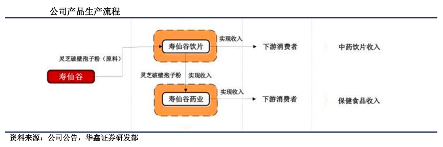 經典案例:根據公司公告、華鑫證券研究部等綜合資訊表明,壽仙谷公司兩大子公司——壽仙谷飲片和壽仙谷藥業分別從事中藥飲片的加工和保健品的制造。壽仙谷飲片從壽仙谷采購原料,經過加工處理后得到產品,其中一部 分作為中藥飲片對外銷售,一部分銷售給壽仙谷藥業,作為保健品深加工的原料。壽 仙谷藥業再將原料進一步深加工制成保健品對外銷售。其具備栽培、生產、銷售全 產業鏈優勢,能夠從源頭上保證產品質量以及控制成本。