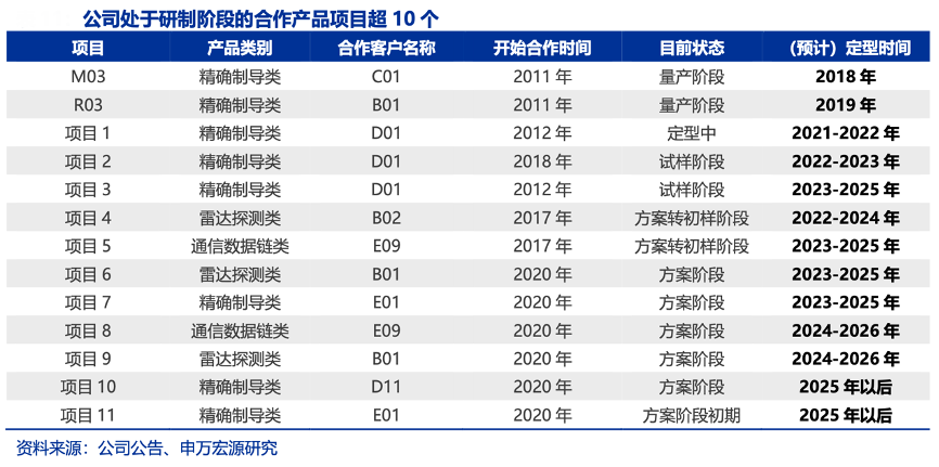 經(jīng)典案例:根據(jù)公司公告、申萬(wàn)宏源研究等綜合資訊表明,雷電微力公司目前與多個(gè)總體單位協(xié)作配套研制 10 余個(gè)型號(hào)產(chǎn)品,相關(guān)產(chǎn)品處于方案、初樣、試樣、定型批產(chǎn)等不同階段,預(yù)計(jì)未來(lái)幾年其將陸續(xù)有新的產(chǎn)品定型并批產(chǎn)供貨。