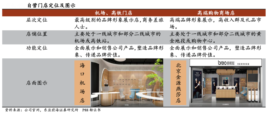 經(jīng)典案例:根據(jù)公司官網(wǎng)、東亞前海證券研究、P88轉(zhuǎn)讓書等綜合資訊表明,截至 2020 年末,倍輕松公司在全國(guó)各大城市共有 165 家直營(yíng)門店,主要分布在一二線城市的高鐵、機(jī)場(chǎng)和中高端購(gòu)物商場(chǎng),渠道布局與公司線下目標(biāo)客群商務(wù)人士的消費(fèi)場(chǎng)景十分契合。通過(guò)高勢(shì)能門店的布局,其將自身品牌、產(chǎn)品精準(zhǔn)觸達(dá)到中高端優(yōu)質(zhì)客戶群體,提供更好的產(chǎn)品購(gòu)買體驗(yàn)以加強(qiáng)品牌認(rèn)知及信任感。