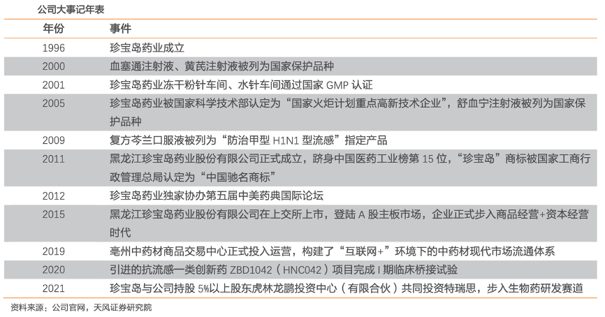 經典案例:根據公司年報、天風證券研究所等綜合資訊表明,珍寶島藥業為延續中藥研發競爭優勢,其與多所全國知名的大學和研究機構合作,不斷進行一些已有成熟產品的二次開發工作,全面深入地開展藥效物質基礎研究、質量控制方法研究、循證醫學研究等。同時,其在哈爾濱、上海等地建立研究院,負責中藥二次開發、中藥創新藥和院內制劑的研發,逐步建立國內一流、與國際接軌的高水平研發平臺。