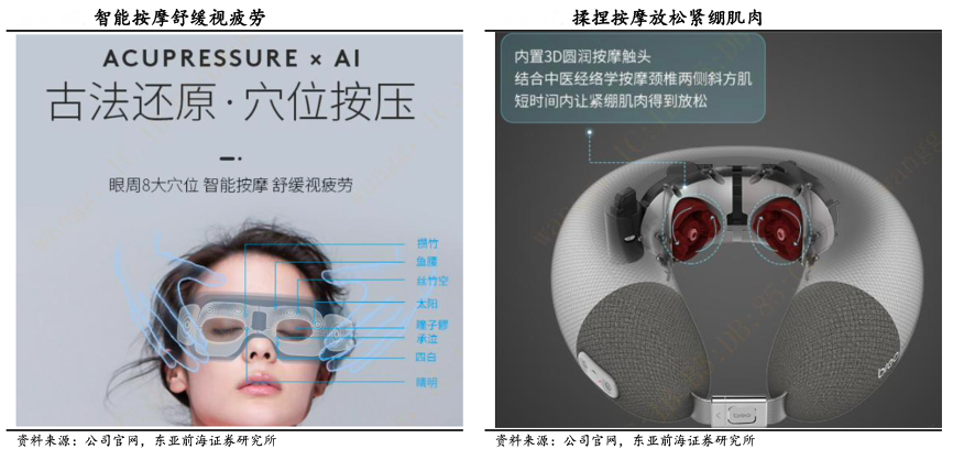 經典案例:根據公司官網、東亞前海證券研究所等綜合資訊表明,倍輕松產品內核源于中醫理論,深度融合古法中醫與現代科技。其以人體工學與中醫理論為指導,設計出適用于智能便攜按摩器的精密動力裝置與傳動裝置,通過氣壓、機械等技術手段實現接近人手的精準按揉效果