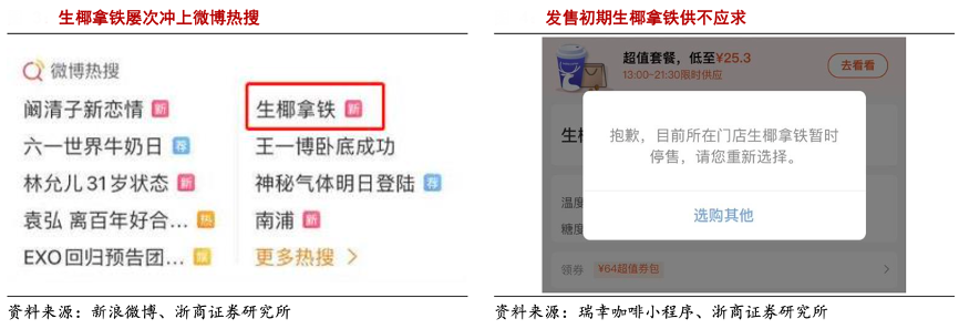 例如,瑞幸于 2021 年夏天推出的生椰拿鐵便成為“爆款”,6 月單月銷量超過 1000 萬杯。事實上,瑞幸自 2019 年以來每年都有“爆款”出現,2019年為隕石拿鐵,2020年為厚乳拿鐵,這些“爆款”都保留在產品線中,成為銷量主力。