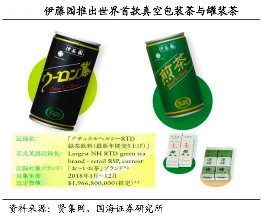 經(jīng)典案例:根據(jù)賢集網(wǎng)、國海證券研究所等綜合資訊表明,以軟飲公司為例,上世紀(jì)日本伊藤園公司成功創(chuàng)造了多個“歷史第一”,如真空包裝技術(shù)開創(chuàng)了日本第一個包裝茶葉,使在超市和雜貨店出售茶成為可能;推出了具有劃時代意義的產(chǎn)品——罐裝烏龍茶,成為第一款罐裝即飲茶。