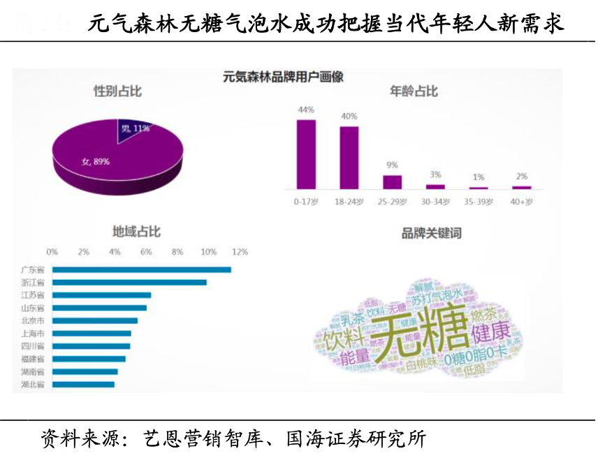 經(jīng)典案例:根據(jù)藝恩營銷智庫、國海證券研究所等綜合資訊表明,元?dú)馍忠?ldquo;0”熱量為特點(diǎn)打造碳酸飲料口感,結(jié)合了年輕一代人既追求“肥宅快樂水”又追求減肥與健康的需求,因此火速成為市場爆品。