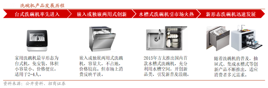 經典案例:根據公開資料、招商證券等綜合資訊表明,我國洗碗機市場發展較晚,滲透率發展緩慢,遠不及空調、冰箱等大白電及油煙機、燃氣灶等大廚電。2015年,方太針對洗碗機市場消費痛點創新性推出水槽洗碗機,以簡化安裝程序、節省廚房整體空間、搭載果蔬清理多功能等賣點獲得消費者認可,成為我國洗碗機市場重要的類型之一,并帶動整體滲透率水平持續向上。