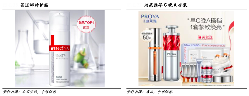 經典案例:根據公司官網、京東、中銀證券等綜合資訊表明,以當前熱門的國貨單品為例,薇諾娜在敏感肌護膚賽道差異化布局,熱門大單品特護霜和高保濕面霜等主打云南植物,更適于國人膚質;珀萊雅推出紅寶石精華和雙抗精華,與國際知名原料企業巴斯夫等合作,同時產品主打早C晚A的科學護膚模式效果顯著,已在天貓護膚品熱門榜單名列前茅。
