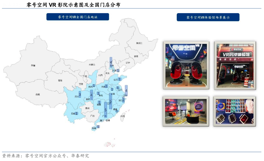經(jīng)典案例:根據(jù)零號空間官方公眾號、華泰研究等綜合資訊表明,2020年為快科技憑借著多年積累的優(yōu)質(zhì) VR 影視內(nèi)容與技術(shù)優(yōu)勢推出零號空間線下 VR 影院,配備有專屬的 VR 觀影蛋椅以及 VR 頭顯設(shè)備,營造沉浸式觀影體驗,同時助力創(chuàng)作者在線下渠道實現(xiàn)內(nèi)容分發(fā),打造生態(tài)閉環(huán)。據(jù)其官方公眾號消息,目前為快科技擁有 40 余家零號空間 VR 影院且均為直營店,預(yù)計將開放加盟模式,實現(xiàn)門店 數(shù)量的快速擴(kuò)張,持續(xù)賦能創(chuàng)作者內(nèi)容變現(xiàn)。