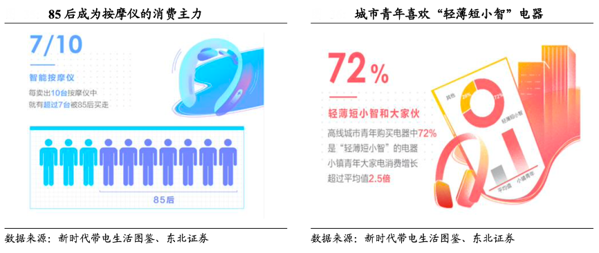 經(jīng)典案例:根據(jù) 2020京東《新時(shí)代帶電生活圖鑒》、東北證券等綜合資訊表明,70%以上的智能按摩儀被85后購買,而城市青年購買電器中的72%是“輕薄短小智”的電器。而倍輕松公司產(chǎn)品定位精準(zhǔn)把握了商務(wù)白領(lǐng)、高端消費(fèi)者 和校園大學(xué)生這類消費(fèi)群體,這一類消費(fèi)者年輕,對(duì)價(jià)格不敏感,對(duì)高端產(chǎn)品的訴求是顏值驚人、造型獨(dú)特和包裝精美。