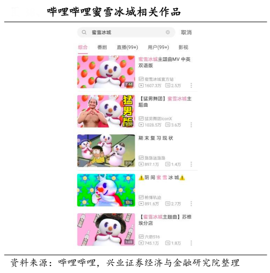 經(jīng)典案例:根據(jù)嗶哩嗶哩、興業(yè)證券經(jīng)濟(jì)與金融研究院等綜合資訊表明,蜜雪冰城設(shè)計(jì)了全球化的品牌諺語——“你愛我我愛你,蜜雪冰城甜蜜蜜”。2021 年 6 月, 蜜雪冰城主題曲 B 站播放量過千萬,更引起 B 站用戶的二創(chuàng)熱潮,加速雪王 IP 傳播,強(qiáng)化消費(fèi)者的品牌認(rèn)知。