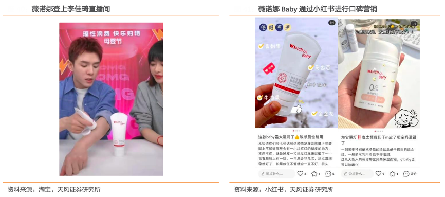 經典案例:根據淘寶、小紅書、天風證券研究所等綜合資訊表明,薇諾娜Baby的客群和主品牌客群用戶較為匹配,主品牌薇諾娜的主要用戶客群以都市中的女性客群為主,消費能力較強,同時對產品品質較為注重,同時購買薇諾娜的敏感肌人群通常對安全性較為看重,與薇諾娜 Baby 注重安全性的屬性相契合,薇諾娜 Baby21年開始發力線上渠道,雙十一即成功進入天貓嬰童護膚類目TOP10,榮登年度排名TOP20,同比實現超 10 倍增長,其中爆款產品“舒潤滋養霜”系列單品,獲得細分行業單品 TOP3。