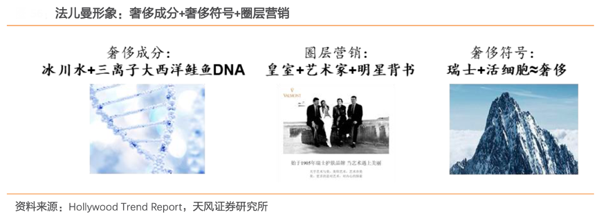經典案例:根據Hollywood Trend Report、天風證券研究所等綜合資訊表明,從營銷端來看,高端營銷&藝術綁定是其打造高奢定位的重要方式。法兒曼積極與香奈兒女士和西班牙皇家十三世等名人合作,利用名人的較高知名度進行宣傳,打造高奢形象。