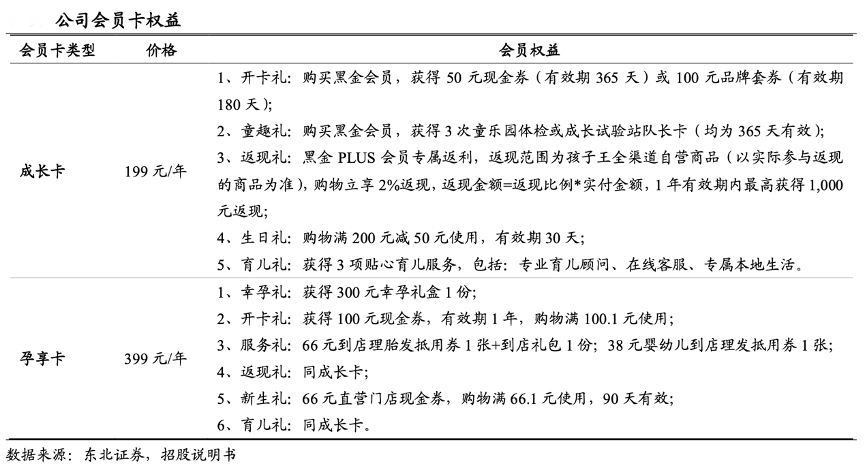 經(jīng)典案例:根據(jù)東北證券、招股說明書等綜合資訊表明,孩子王公司對會員進行了更加精細化的運營,其于2018 年正式推出付費會員—黑金 PLUS 會員,圍繞孕婦與嬰幼童兩大目標用戶以及差異化需求,推出了孕享卡(399元/年)和成長卡(199元/年)兩類。截至 2020 年末,公司累計黑金 會員規(guī)模超過 70 萬人,單客年產(chǎn)值達到普通會員的 10 倍左右。