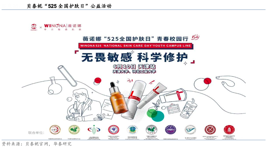 經(jīng)典案例:根據(jù)貝泰妮官網(wǎng)、華泰研究等綜合資訊表明,貝泰妮積累強品牌認知度,雙11等促銷季更多自然流量轉(zhuǎn)化。品牌雙 11 和雙 12 購物節(jié)的虹吸效應(yīng)明顯,21 年 Q4 收入達 19.1 億元,全年占比 47.49%。同時其也抓住38 節(jié)、618 購物節(jié)等時機進行促銷活動。2021年創(chuàng)造性開展“525 全國護膚日”公益行動,在全國 11 大城市開產(chǎn)20 長聯(lián)合超頭部線下渠道義診活動,引導(dǎo)消費者合理預(yù)期化妝品功效,提高品牌知名度。