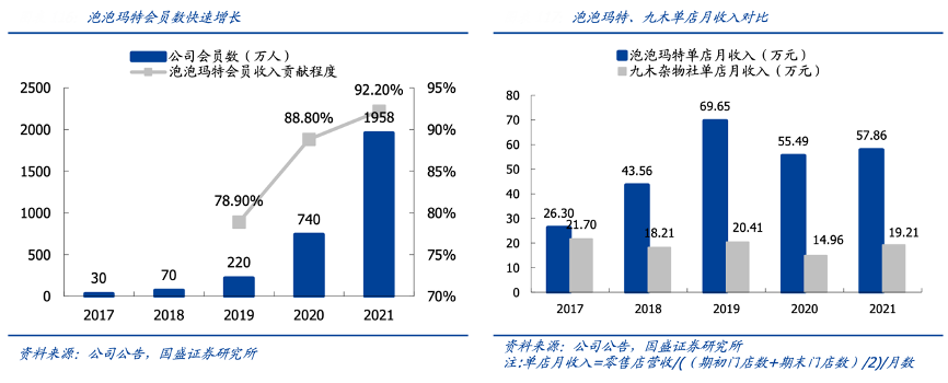經(jīng)典案例:根據(jù)公司公告、國(guó)盛證券研究所等綜合資訊表明,2019- 2021 泡泡瑪特會(huì)員數(shù)從 220 萬(wàn)提升至 1958 萬(wàn),收入貢獻(xiàn)度從 78.9%提升至 92.2%; 而截至 2021 年,九木雜物社會(huì)員人數(shù)超 300 萬(wàn);此外,泡泡瑪特以會(huì)員激勵(lì)機(jī)制刺激復(fù)購(gòu)(會(huì)員等級(jí)由近六個(gè)月的購(gòu)買(mǎi)金額、購(gòu)買(mǎi)頻率及其他活動(dòng)決定),高級(jí)會(huì)員可以享受泡泡提示卡/顯示卡、展會(huì)特權(quán)、商城特權(quán)、免郵福利(正常情況 3 個(gè)包郵)等權(quán)益。