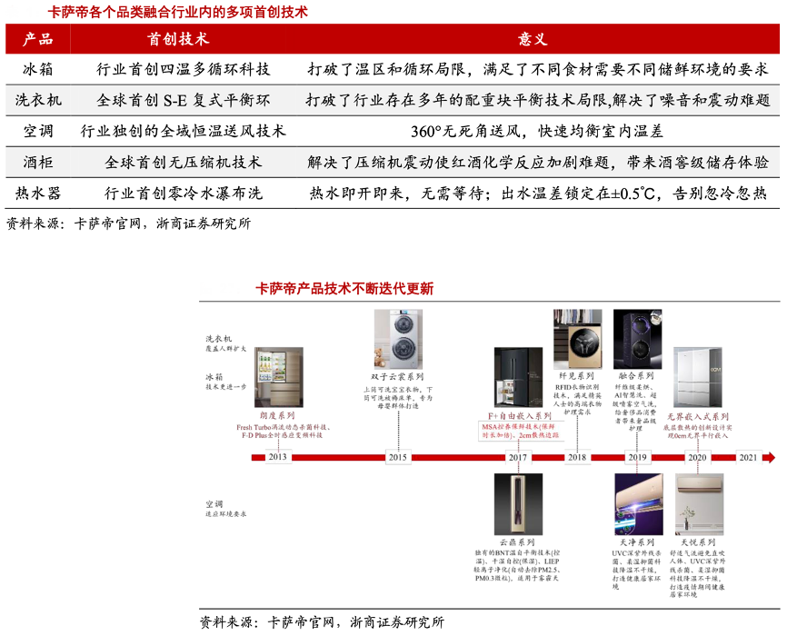 經典案例:根據卡薩帝官網、浙商證券研究所等綜合資訊表明,卡薩帝冰箱系列產品朗度、F+、無界嵌入在關鍵技術上不斷突破,實現保鮮時長翻倍、散熱邊距從 2cm 到 0cm。洗衣機系列雙子、纖見、融合以用戶需求為落腳點,不斷拓展服務人群,從母嬰到奢侈品消費群體。空調系列云鼎、天凈、天悅則注重打造健康環境,無論在霧霾盛行期間,還是在疫情居家期間,都能提供舒適的室內空間。