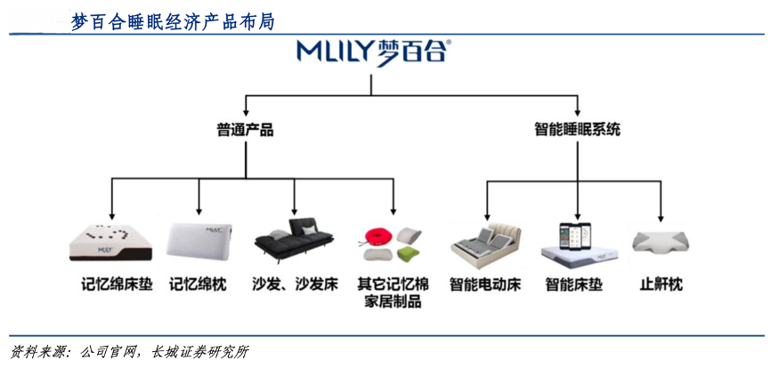 經典案例:根據公司官網、長城證券研究所等綜合資訊表明,由于智能床需要實現姿勢輔助變化的功能,因此只能搭配可以配合變化的記憶棉床墊。通過和記憶棉床墊一起在終端協同展示,智能床能夠快速導入夢百合的銷售渠道;特別是國內的線上渠道,夢百合公司的智能床+床墊的采用低價引流的銷售方式,有望加快睡眠智能化發展及記憶 棉床墊的推廣。