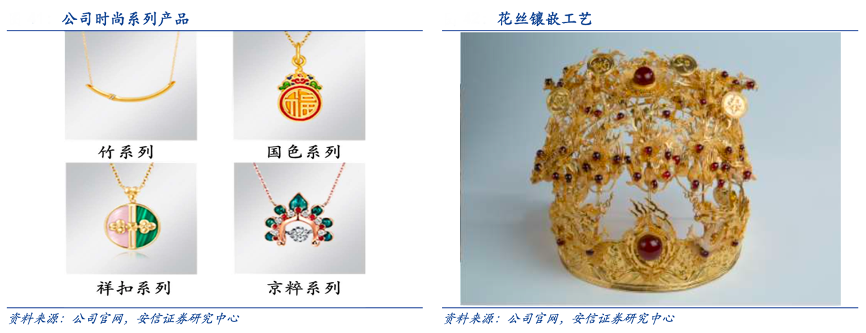 經典案例:根據公司官網、安信證券研究中心等綜合資訊表明,潮宏基致力于傳統花絲工藝的保護,十年心血興建潮宏基臻寶首飾博物館,創辦花絲鑲嵌工作室,培養新一代手工藝人。2018年開始持續至今,潮宏基聯合創新公益組織稀捍行動發起的“花絲創研駐地項目”,旨在邀請國內外藝術大師以新的設計視野為傳統手工藝帶來全新的視覺審美。項目推出的花絲糖果系列,將傳統花絲鑲嵌結合甜美可愛的糖果造型,該系列一經上市轟動各界。