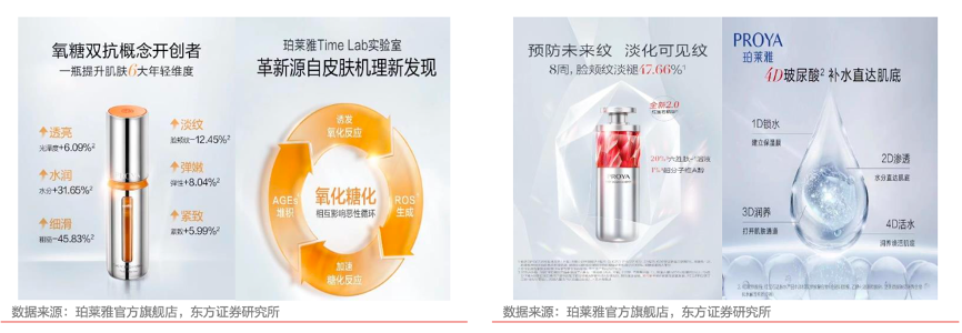 經(jīng)典案例:根據(jù)珀萊雅官方旗艦店、東方證券研究所等綜合資訊表明,珀萊雅公司2021年初對(duì)紅寶石和雙抗精華進(jìn)行產(chǎn)品成分升級(jí),推出 2.0 系列,2022 年女王節(jié)其“早C晚A套餐”銷售件數(shù)超 7.8 萬(wàn)支,品牌位居天貓國(guó)貨美妝TOP1。2021年其大單品在其天貓平臺(tái)銷售額占比達(dá)60%左右。