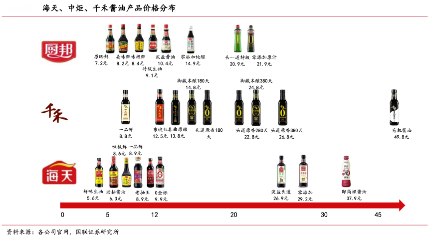經典案例:根據各公司官網、國聯證券研究所等綜合資訊表明,千禾以成為零添加醬油的第一品牌為目標,在業內首次推出“零添加”醬油產品。其向上布局有機, 向下布局高鮮,產品矩陣和價格帶逐漸拉長。高鮮醬油補位10-15 元/500ml 價格帶,輔助零添加產品進行市場推廣。有機醬油重塑高端天花板,有機醬油和天元有機的指導價分別 49.8 元/500ml,298 元/500ml。
