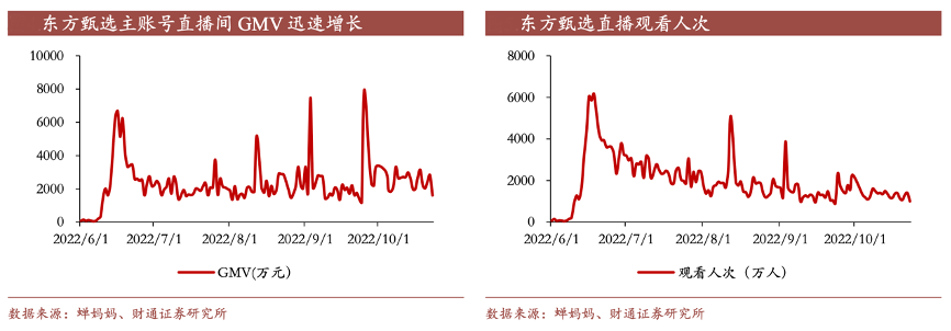 經(jīng)典案例:根據(jù)蟬媽媽、財(cái)通證券研究所等綜合資訊表明,新東方在線公司通過直播營(yíng)銷銷售優(yōu)質(zhì)農(nóng)產(chǎn)品及其他產(chǎn)品,終在 2022 年 6 月成功“破圈”,迅速積累 了大量的流量及人氣,GMV 迅速增長(zhǎng)超過 6000 萬元,場(chǎng)觀人次在峰值處達(dá)到 6000 萬人次。