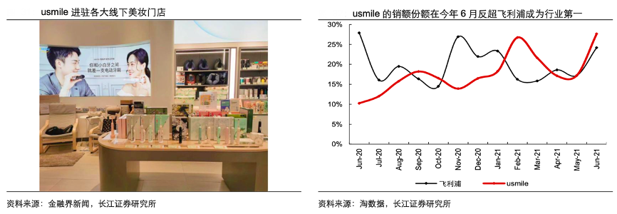 經典案例:根據金融界新聞、淘數據、長江證券研究所等綜合資訊表明,截至 2021 年 5 月,usmile 共進駐超過5000 家線下門店,如屈臣氏、伊藤洋華堂、銀泰西選、三亞免 稅等中高端渠道,其中很多門店是被 usmile 追求極致清潔的專業產品所打動,首次引進口腔護理品類的產品。