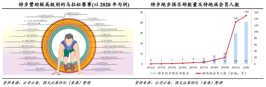 經典案例:根據公司公告、國元證券經紀(香港)等綜合資訊表明,截至2022年6月,特步跑步俱樂部數量達 41 家,特跑族會員達到 150 萬。根據特步 2025 規劃,特跑族會員增加至 450 萬。
