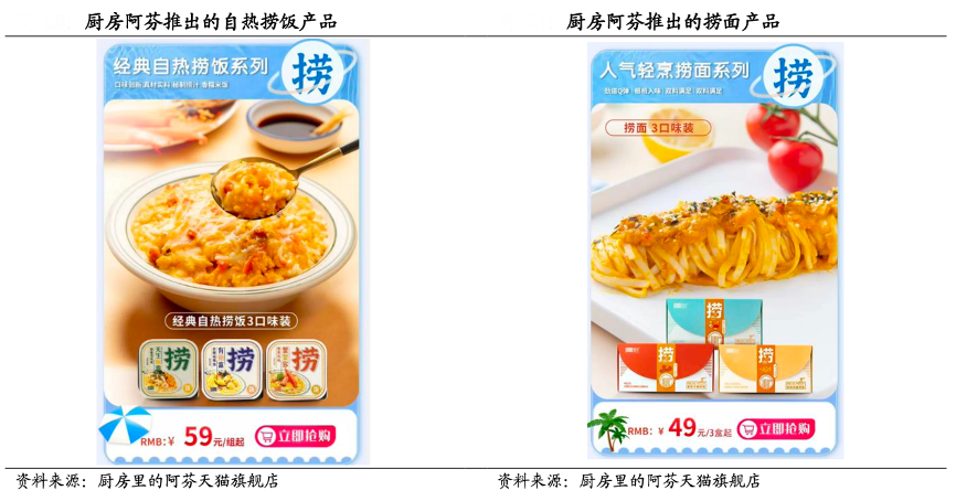經典案例:根據廚房里的阿芬天貓旗艦店、國海證券研究所等綜合資訊表明,除了空刻意面,廚房阿芬還推出了廚房阿芬撈飯和撈面等輕烹食品。目前廚房阿芬和空刻網絡的產品主要通過電商直營的方式對外銷售,如公司在天貓、淘寶、京東、抖音和小紅書等第三方線上平臺設立自營店鋪,通過自營店鋪向消費者直接銷售商品。
