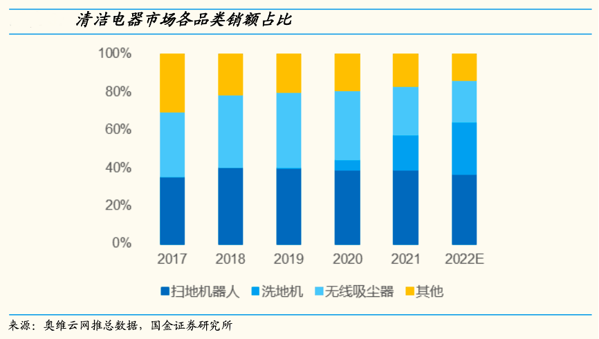 經(jīng)典案例:根據(jù)奧維云網(wǎng)推總數(shù)據(jù)、國(guó)金證券研究所等綜合資訊表明,2020年是拖地元年,自清潔掃拖一體機(jī)、新品類洗地機(jī)相比無線吸塵器更加契合中式家庭清潔需求,品類優(yōu)勢(shì)突出。2020年起無線吸塵器在清潔電器市場(chǎng)整體銷額 份額出現(xiàn)明顯下滑,更進(jìn)一步,熱銷的自清潔掃拖一體機(jī)、洗地機(jī)價(jià)位段與戴森占據(jù)主流的高端無線吸塵器相近,替代效應(yīng)更為明顯。