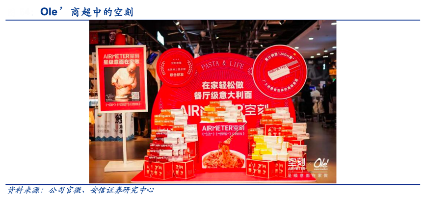 經(jīng)典案例:根據(jù)公司官微、安信證券研究中心等綜合資訊表明,從空刻的渠道布局來看,空刻在線上渠道已成為天貓同類品牌 TOP1,并有望通過高舉高打 的品牌宣傳繼續(xù)保持高增速。同時(shí),2020年末空刻開始全面布局線下渠道,目前已進(jìn)入Ole’、盒馬、麥德龍等多家線下精品超市和新零售渠道,以線上的客流量黏性向線下引流,線上線下全面布局有望獲得更大增量。