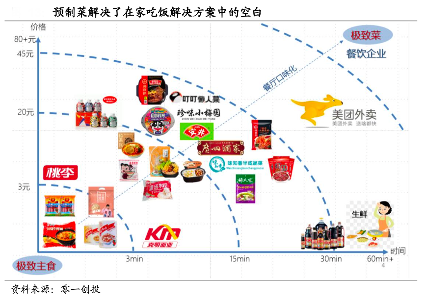 經典案例:根據零一創投、國海證券研究院等綜合資訊表明,對于一個家庭來說,不太可能每頓都吃外賣或者外出就餐,主要的原因包括:太貴或者太便宜都不行:太貴經濟負擔重,太便宜擔心食 材不好,不衛生;口味不夠好吃,容易吃膩:外部的餐品往往重油重鹽,很難吃到符合家庭日常口味的菜肴等,而預制菜解決了在家吃飯解決方案中的空白。