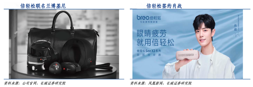 經典案例:根據公司官網、鳳凰新聞、長城證券研究院等綜合資訊表明,2021 年 5 月 31 日,倍輕松公司宣布明星肖戰成為其首位全球品牌代言人,在微博、朋友圈、抖音多媒體組合曝光,第一條預告微博半小時內點贊 破20 萬,官宣微博點贊量突破 215 萬。相關微博話題沖上熱搜,閱讀量突破 13 億。除 了曝光效果,倍輕松的點擊互動率達到行業均值的 10 倍之多。