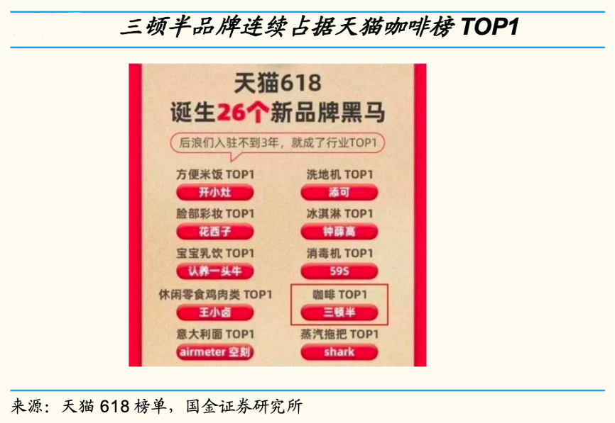 經典案例:根據天貓618榜單、國金證券研究所等綜合資訊表明,三頓半 2021H1 銷售額超過 4 億元,每年保持2-3 倍增速,復購率近 50%,并在天貓霸占咖啡銷量 TOP1。從 2019 年起,其通過開設線下門店打造“返航計劃”(消費者攜帶用過的小瓶子到三頓半 指定地點進行回收 ,即可獲得三頓半積分用以兌換相關周邊或是品牌產品),將線上流量轉化到線下,給予用戶全新的體驗,完成裂變動作。