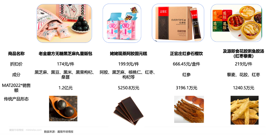 經(jīng)典案例:根據(jù)魔鏡市場情報等綜合資訊表明,滋補(bǔ)類產(chǎn)品通過改變產(chǎn)品形態(tài),稀釋產(chǎn)品稀缺性,簡化工序,利用價格撬動消費(fèi)者,提高即時滿足性