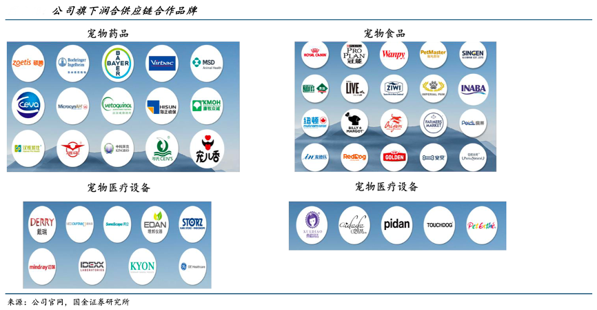 經典案例:根據公司官網、國金證券研究所等綜合資訊表明,新瑞鵬簽約多家頭部優質品牌,大規模采購保證對上游議價力。其與渴望、皇家等頭部優質寵物產品食品、藥品、設備等知名品牌深度合作,通常比其他市場提前六個月到一年確保新產品供應,并獨家獲得優質品牌的熱門產品,相較競爭者供應鏈穩定和價格相對優勢明顯。截至2022Q3,其已經覆蓋 100 多個主要城市的高效供應鏈網絡。