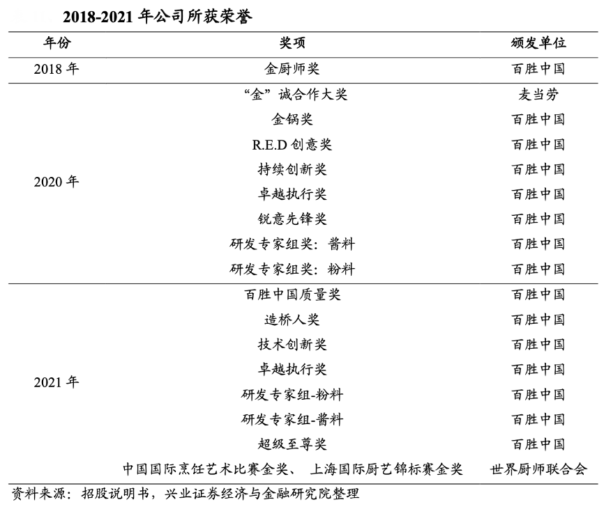 經典案例:根據招股說明書、興業證券經濟與金融研究院等綜合資訊表明,寶立食品公司及公司主要團隊人員多次被客戶授予優質供應商相關榮譽,如百勝中國“造橋人獎”、“金鍋獎”,被麥當勞頒予 “‘金’誠合作大獎”等。