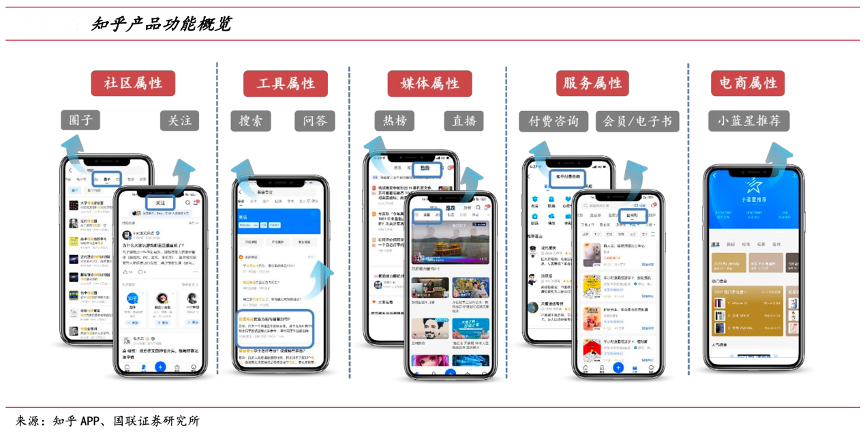 經(jīng)典案例:根據(jù)知乎APP、國(guó)聯(lián)證券研究所等綜合資訊表明,知乎最初為問答社區(qū),經(jīng)過不斷的迭代升級(jí),現(xiàn)已發(fā)展為融入問答、媒體、服務(wù)、電商等多種屬性的綜合社區(qū)。用戶可以在社區(qū)中提問,并邀請(qǐng)其他用戶進(jìn)行回答,亦或是直接作為內(nèi) 容消費(fèi)者瀏覽內(nèi)容。此外,用戶也可以在平臺(tái)上交易,比如購(gòu)買商品、付費(fèi)咨詢、購(gòu) 買付費(fèi)課程等。